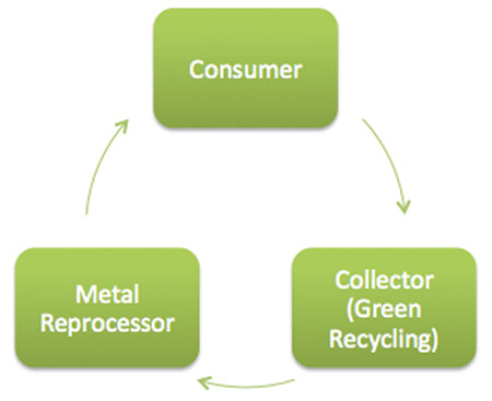 This represents the complete cycle of metal recycling from consumer, to collector and the end of the chain the metal reprocessor.